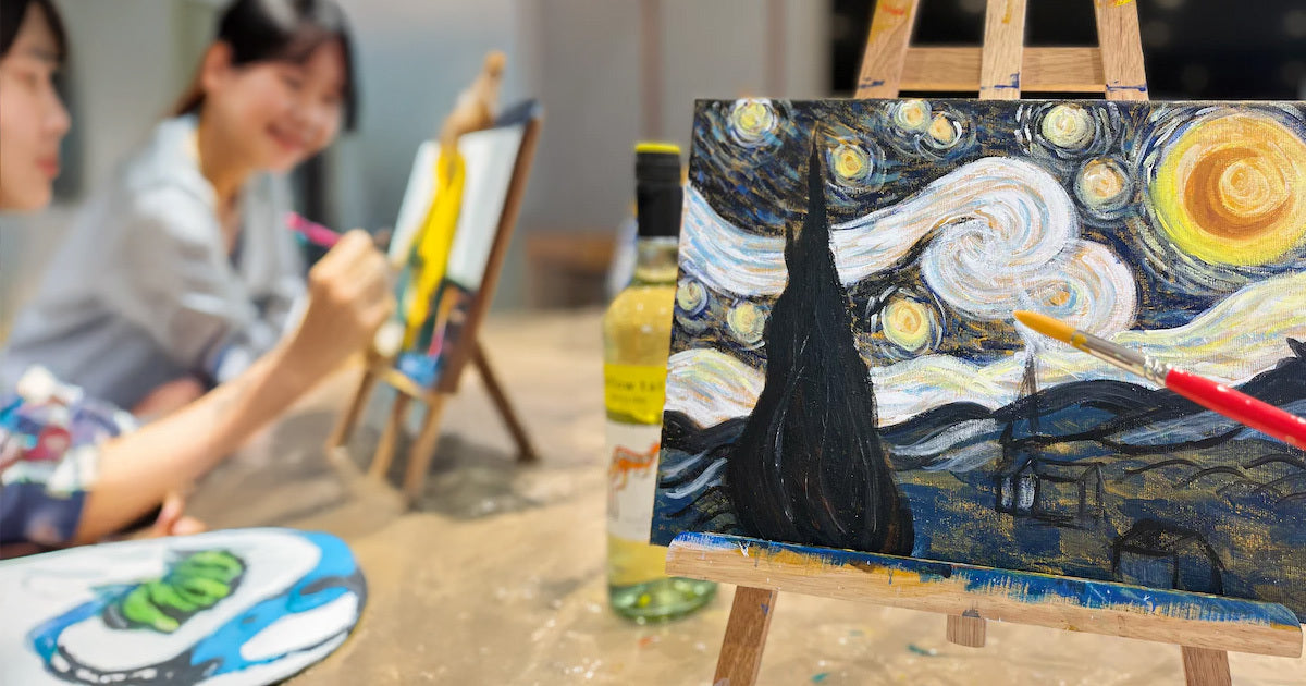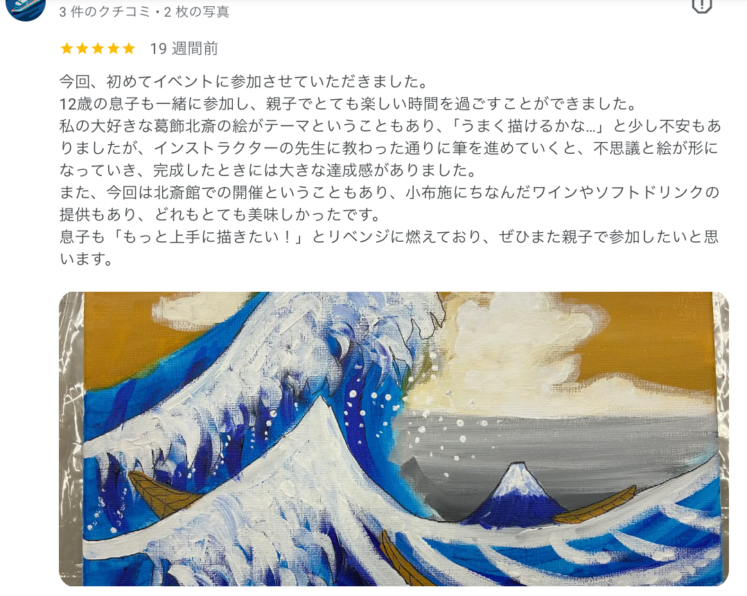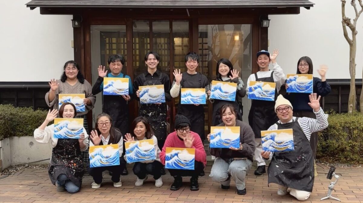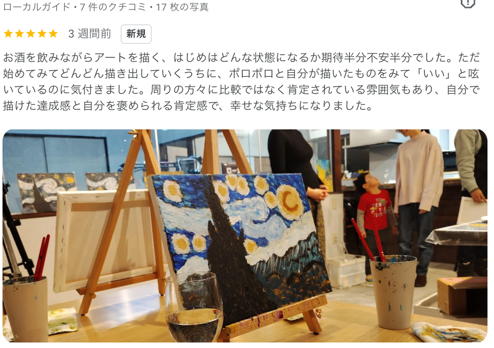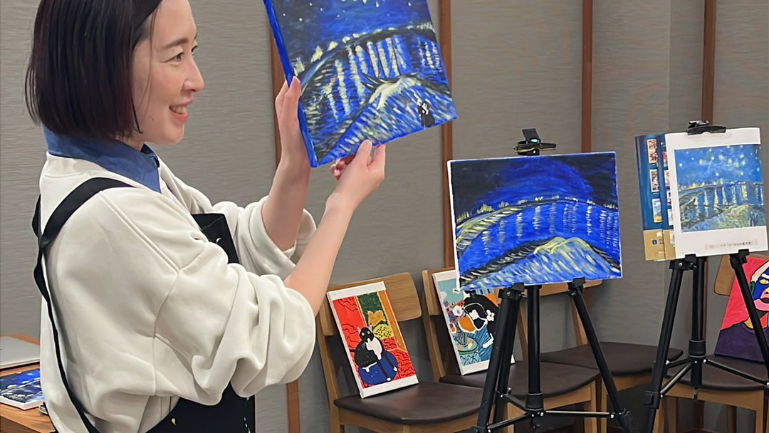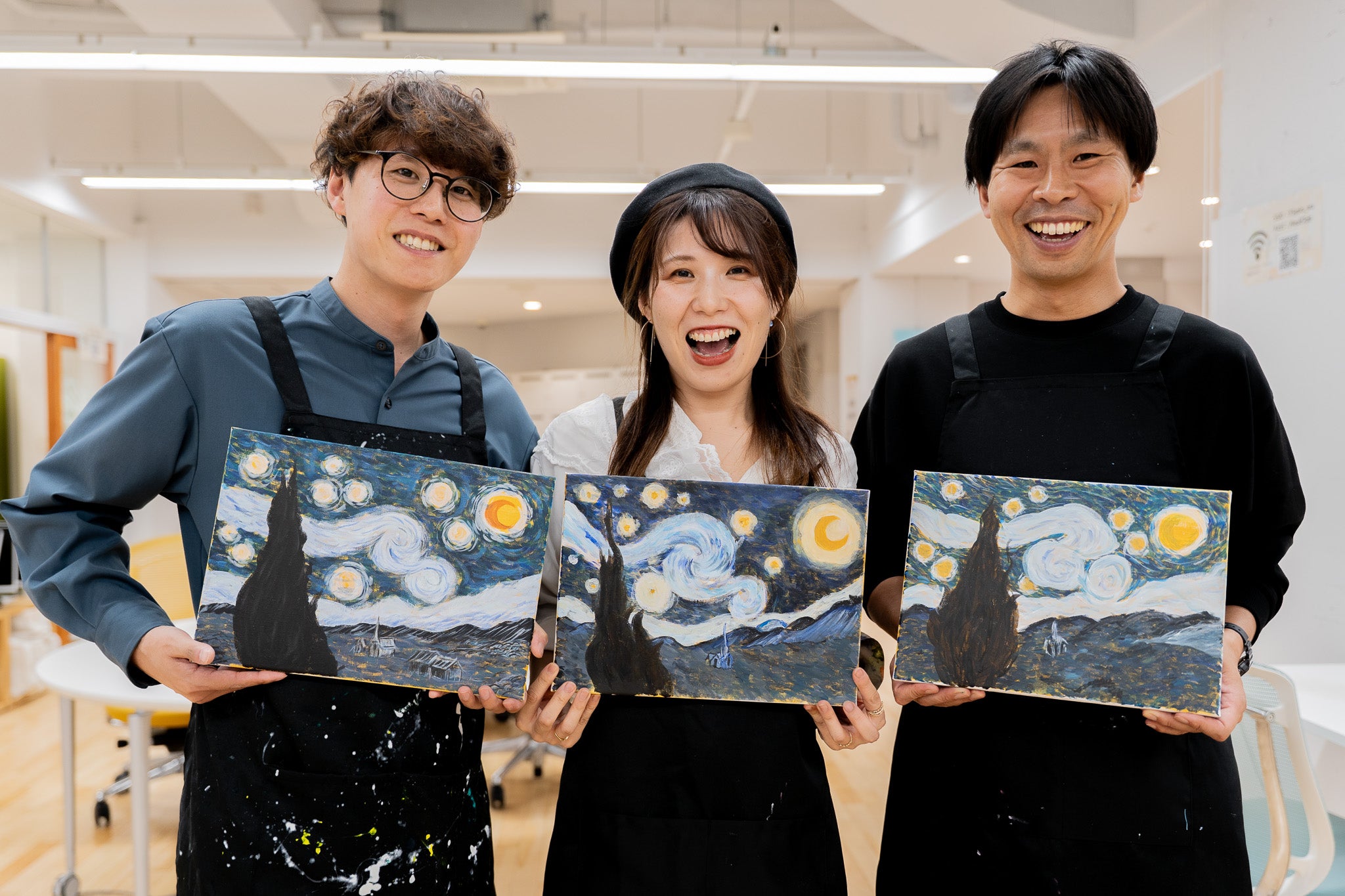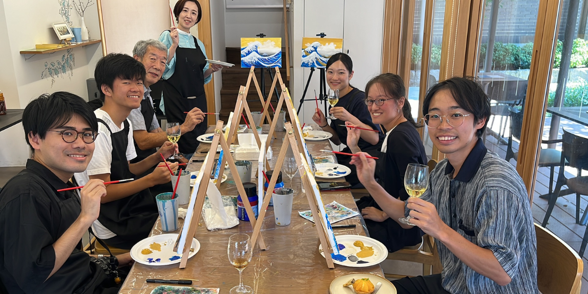 長野市に拠点を置く、ワインやノンアルカクテルを片手に、絵画をえがく新感覚のアート体験スタジオ。初心者でも120分後には素敵な作品が完成します。