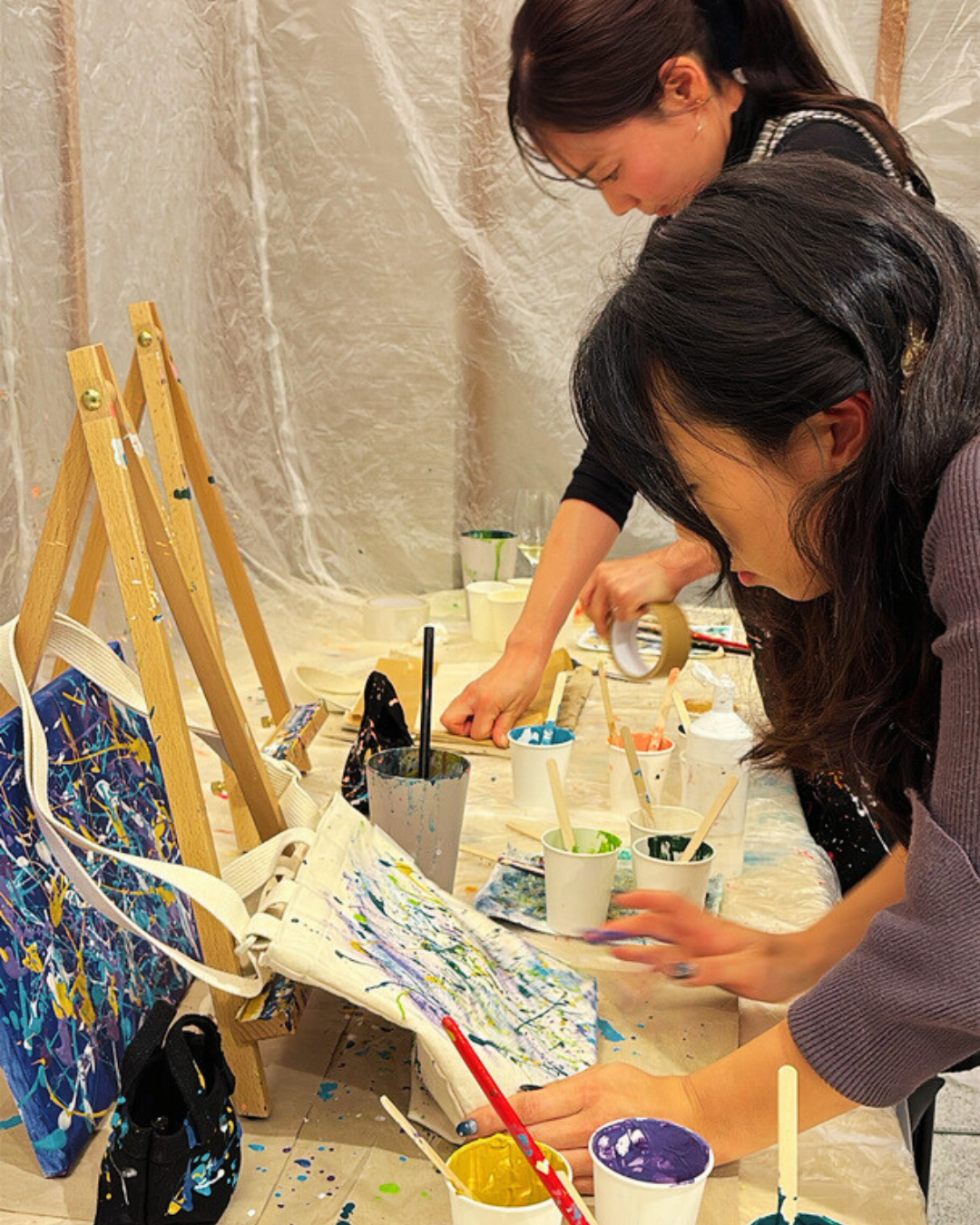 約2時間後にはすてきな抽象画があなたの目の前に現れます。出来上がった作品は、ぜひご自宅に飾って楽しんでくださいね♪