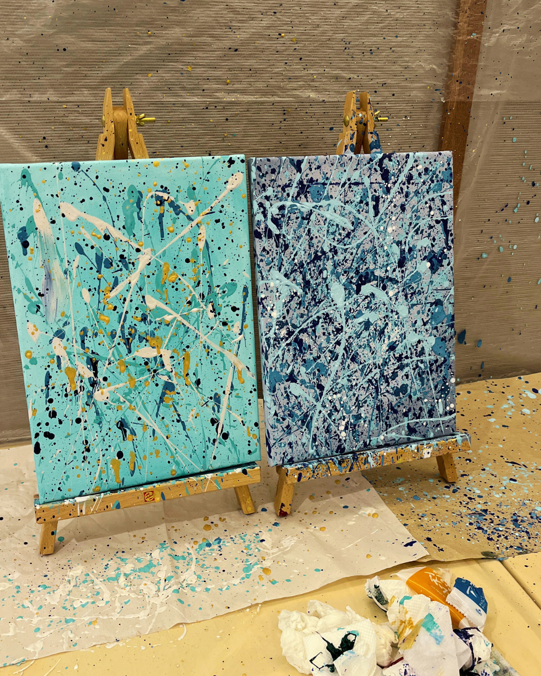 今回のセッションでは、ジャクソンポロック風にアクションペインティングを描いていきます。